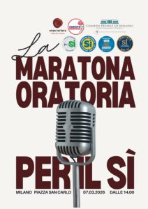 Questo sabato 7 marzo, dalle ore 14 alle 19, Piazza San Carlo a Milano ospiterà la Maratona Oratoria per il Sì al Referendum Giustizia: cinque ore di interventi pubblici, testimonianze e approfondimenti sui contenuti e le ragioni del Sì alla consultazione referendaria del prossimo 22/23 marzo.