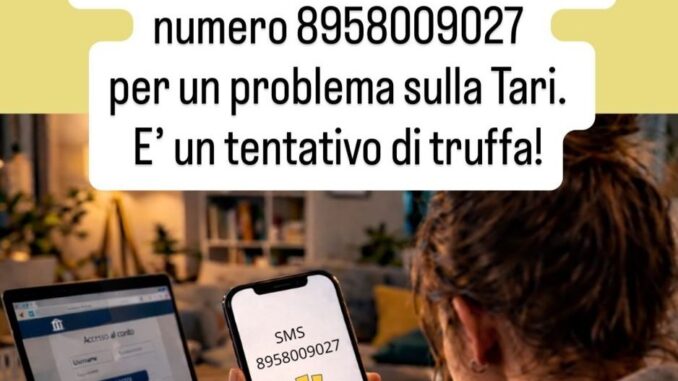 Il messaggio riguarda una ipotetica “posizione Tari irregolare”: non contattate il numero indicato…