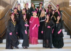 Da sempre appassionata di moda, con queste modelle curvy voglio portare in passerella autostima, consapevolezza e sicurezza di sé, proprio come la mia frase: “Mi Stimo con Stile”. Cioè amarsi ad ogni età e sentirsi belle”. Le collezioni indossate dalle modelle sono state due. Una per uno shooting fotografico, ispirata agli anni ’20, con le modelle vestite di nero con collana di perle bianche, guanti, coroncina e piuma di colore fucsia.