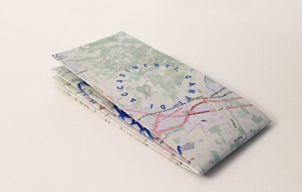 Il progetto di Chiara Innocenti Sedili si sviluppa come un’azione di mappatura dei territori intorno a Bologna, includendo anche lo spazio della fiera. L’artista individua luoghi abbandonati e li connette attraverso percorsi ad anello tracciati in bicicletta, lasciando in ciascun punto un segno minimo che non occupa ma riattiva. In fiera, il lavoro prende forma come installazione site specific accompagnata dalla mappa dei percorsi consultabile, mentre l’opera coincide con il gesto stesso dell’attraversamento.