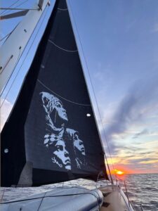 Laika, insieme al suo team, dopo aver navigato per circa 400 miglia con i volti di una donna e di bambini gazawi dipinti sulle vele – l’opera si intitola AGAIN – con lo scopo di accendere i riflettori sulla nuova spedizione della Global Sumud Flotilla del prossimo 12 aprile, approda ora a Sanremo e realizza un nuovo blitz nel centro della città.