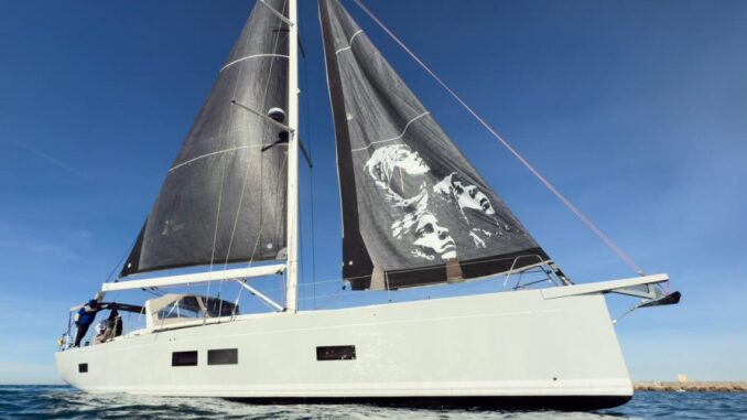 Laika, insieme al suo team, dopo aver navigato per circa 400 miglia con i volti di una donna e di bambini gazawi dipinti sulle vele – l’opera si intitola AGAIN – con lo scopo di accendere i riflettori sulla nuova spedizione della Global Sumud Flotilla del prossimo 12 aprile, approda ora a Sanremo e realizza un nuovo blitz nel centro della città.
