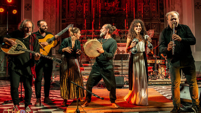 Il progetto che unisce tradizione orale e scrittura contemporanea in una musica fisica, pulsante e profondamente partecipata, vedrà sul palco Giulia Campana (voce, tamburi a cornice e percussioni), Antonio Smiriglia (voce, tamburi a cornice e percussioni), Raffaele Califano (voce, tammorra e castagnette), Mario Crispi (direzione musicale, fiati etnici e voce), Stefano Saletti (bouzouki, oud e voce), Gabbrio Bevilacqua (contrabbasso epercussioni) ed Emy Vaccari (danza, lira calabrese, percussioni e voce).
