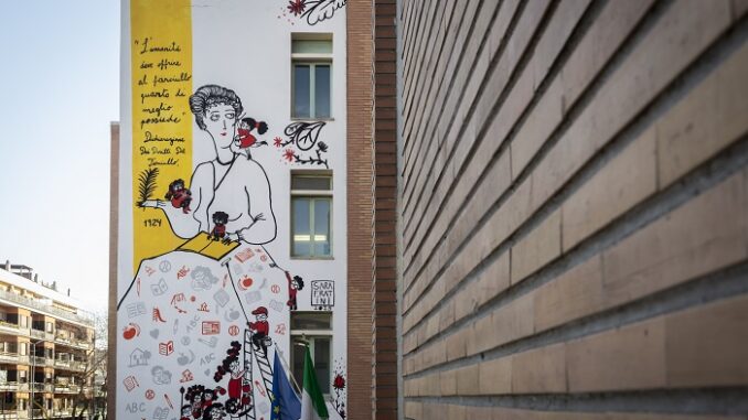 Infanzia: Save the Children, l’inaugurazione del murales dedicato a Eglantyne Jebb all’Istituto Giuliano da Sangallo di Ostia Ponente