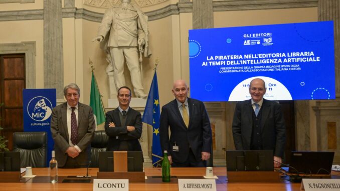 La ricerca è stata presentata dal presidente di Ipsos Doxa Nando Pagnoncelli durante un incontro organizzato da Gli Editori, l’accordo di consultazione tra AIE e la Federazione Italiana Editori Giornali (FIEG). Moderati dal direttore di Ansa Luigi Contu, dopo i saluti istituzionali, l’intervento del Senatore e Sottosegretario di Stato alla Presidenza del Consiglio dei ministri con delega all’informazione e all’editoria Alberto Barachini e quelli dei presidenti di AIE e di FIEG, Innocenzo Cipolletta e Andrea Riffeser Monti, ne hanno dibattuto Massimiliano Capitanio, commissario Autorità per le Garanzie nelle Comunicazioni, Crescenzo Sciaraffa, Generale di Brigata della Guardia di Finanza, Maria Letizia Bixio, docente all’Università Europea di Roma e Mauro Tosca, responsabile antipirateria AIE. A seguire, l’intervento della scrittrice Felicia Kingsley e le conclusioni di Federico Mollicone, presidente della Commissione Cultura, Scienza e Istruzione della Camera dei deputati.