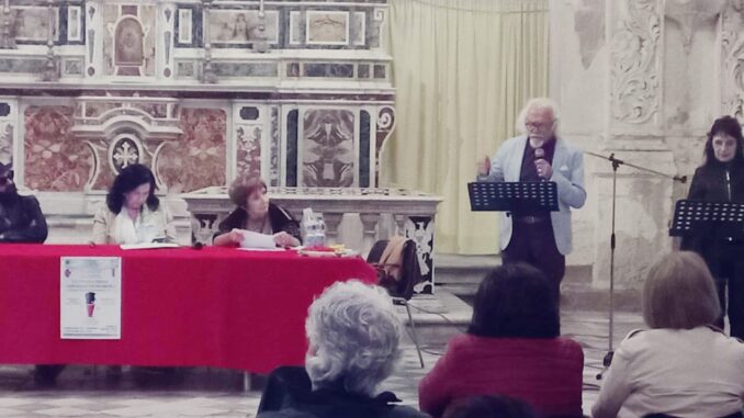 Da ultimo ha preso la parola l’autore stesso, che ha raccontato qualche aneddoto legato alla sua scrittura. Ad arricchire la giornata, rendendola eccezionalmente evocativa, l’interpretazione di alcune liriche proposta da due attori professionisti e rinomati, Margherita Smedile e Gianfranco Quero, le cui voci hanno echeggiato con vibrazioni quasi liturgiche nella volta del santuario, guadagnandosi uno scroscio di meritati applausi e i complimenti dell’astanteria. A corollario dell’incontro, numerosi interventi estemporanei da parte del pubblico hanno dimostrato l’interesse che ancora unisce i lettori a un genere tutt’altro che popolare, e talvolta ostico, come la poesia.