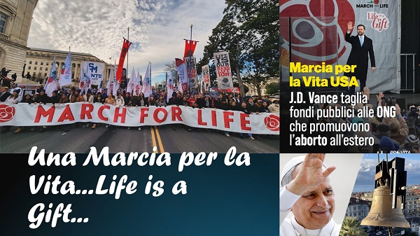 Ogni anno a Washington in questo periodo si svolge una grande e affollata “Marcia per la Vita”, quest’anno è la 53° edizione. Decine di migliaia, in strada, per gridare che la Vita non è negoziabile e che va tutelata e protetta in ogni sua fase e condizione, dal concepimento alla morte naturale. Riprendo la notizia dal sito Provitaefamiglia.it La March for Life di Washington, è stata una grande festa di famiglie, bambini, mamme, papà, attivisti, politici, ma soprattutto una grande dimostrazione di quanto il popolo – americano – pro life sia la maggioranza, la base del Paese, che pensa che ogni vita sia degna, sia un dono, come appunto il tema scelto per quest’anno: “Life is a Gift”, un messaggio semplice e potentissimo, capace di riassumere l’idea che la vita non è un “prodotto” né un diritto di qualcuno su qualcun altro, ma un dono da accogliere e proteggere.