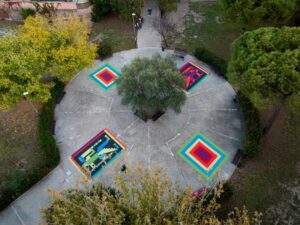30 giorni di lavoro, 3 squadre di decoratori, più di 4.200 litri di vernici fotocatalitiche, 15 aree urbane rigenerate, 5 nomi di rilievo del mondo dell’arte e del design, e l’approccio dell’urbanistica tattica che incontra la sostenibilità: questa la ricetta da cui nasce “Blu Art – i colori dell’aria”, un progetto realizzato per Zètema e per l’Assessorato all’Ambiente – Dipartimento Ciclo dei Rifiuti, Prevenzione e Risanamento dagli Inquinanti di Roma Capitale, che ha dato vita a 15 artwork pavimentali attraverso cui contrastare l’inquinamento e sensibilizzare la cittadinanza sulle sfide imposte dall’emergenza climatica.