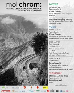 In connessione con questa dimensione internazionale, Molichrom sviluppa un’analisi radicata nel territorio con il progetto collettivo Ciò che resta invisibile. Sguardi sulla violenza di genere realizzato insieme alle associazioni fotografiche locali e ai Centri Antiviolenza del Molise. Un osservatorio e laboratorio creativo del Festival che nasce dall’esigenza di contribuire a una riflessione più ampia sui meccanismi culturali e sociali che alimentano disuguaglianze e forme di sopraffazione, nella consapevolezza che il contrasto alla violenza di genere richiede prima di tutto un profondo cambiamento culturale e un lavoro costante di sensibilizzazione. La fotografia non può fermare la violenza. Ma può rendere visibile ciò che si preferisce non vedere. Questo percorso visivo esplora le dinamiche attraverso cui la violenza di genere si manifesta nelle relazioni quotidiane: dall’isolamento progressivo alle pratiche di controllo, dalla persistenza delle minacce oltre la relazione affettiva ai percorsi di uscita e al fondamentale lavoro di accompagnamento delle operatrici. I dati nazionali ISTAT evidenziano con chiarezza come la violenza di genere non sia un’emergenza episodica ma un fenomeno strutturale, profondamente radicato nelle relazioni intime e nei contesti familiari. In una regione caratterizzata da piccoli centri e da una forte prossimità sociale come il Molise, questa realtà assume sfumature ancora più complesse: la limitata presenza di servizi, la difficoltà di accesso alle reti di protezione e la densità delle relazioni comunitarie possono rendere più difficile interrompere dinamiche di controllo e sopraffazione. In questo senso, il nomadismo che Molichrom indaga non coincide soltanto con lo spostamento fisico da un luogo all’altro, ma riguarda anche il percorso, spesso silenzioso e faticoso, di chi è chiamata a ridefinire se stessa, a ricostruire autonomia e identità attraversando confini interiori prima ancora che geografici.