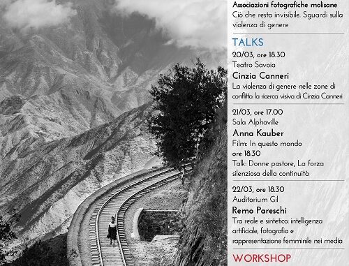 Il programma della quinta edizione de festival arricchisce la riflessione con una serie di incontri di dialogo e approfondimento. Cinzia Canneri sarà protagonista di un Talk sul proprio processo di ricerca e sulla dimensione geopolitica del progetto al Teatro Savoia, con lei il direttore artistico Eolo Perfido e la presidente di Amnesty International Italia, Alba Bonetti con un puntuale e necessario intervento su Etiopia: violenza sessuale, esecuzioni sommarie e torture. Il giorno dopo la proiezione del film In questo mondo di Anna Kauber stimolerà uno sguardo sulle esperienze delle donne pastore e sulle forme di autonomia nei contesti rurali. Il prof. Remo Pareschi dell’Università del Molise guiderà una riflessione sul rapporto tra intelligenza artificiale, fotografia e media, ponendo l’attenzione sui bias dei sistemi algoritmici e sulle implicazioni delle immagini sintetiche nella rappresentazione delle donne. Il workshop Radici, condotto da Fabio Moscatelli, offrirà un’esperienza immersiva nelle comunità e nei paesaggi rurali del territorio, esplorando come relazioni, saperi e narrazioni si costruiscono visivamente.