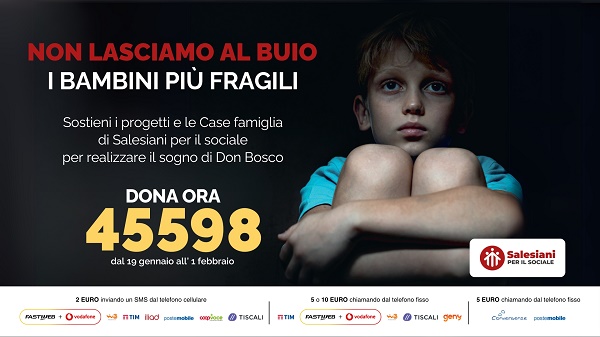 Da oltre trent’anni, Salesiani per il sociale opera proprio nei contesti in cui i giovani sono più esposti al rischio di marginalità: per continuare in maniera sempre più incisiva in questa direzione, dal 19 gennaio al 1° febbraio 2026, Salesiani per il sociale promuove la Campagna di sensibilizzazione e raccolta fondi “Non lasciamo al buio i bambini più fragili”: tutti possono donare chiamando da rete fissa o inviando un SMS al numero solidale 45598.