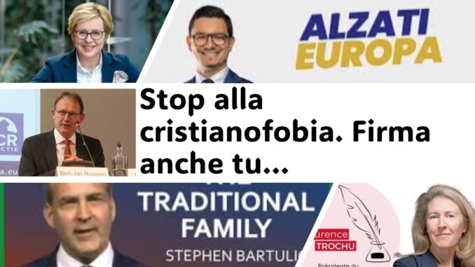 Per sostenere l’iniziativa, occorre visitare il sito web https://www.stop-christianophobie.eu/it e poi firmare la petizione. Per l’Italia ha preso l’iniziativa l’onorevole Paolo Inselvini di FdI-ECR, “Abbiamo avviato la più grande raccolta firme in Europa contro gli attacchi verso i cristiani e per chiedere all’Unione europea l’istituzione di un Coordinatore europeo contro la cristianofobia,”. (La cristianofobia esiste, 2.4.26, lavocedelpopolo.it) Inselvini, ha ricordato una recente presa di posizione di Papa Leone XIV, esiste anche ‘una sottile forma di discriminazione religiosa nei confronti dei cristiani, che si sta diffondendo anche in Paesi dove essi sono numericamente maggioritari […] dove talvolta si vedono limitare la possibilità di annunciare le verità evangeliche per ragioni politiche o ideologiche’. Pertanto, secondo l’eurodeputato, “Non possiamo più restare in silenzio di fronte a una deriva che colpisce milioni di cittadini europei. Difendere i cristiani significa difendere la libertà religiosa, la libertà di espressione e uno dei pilastri fondanti della nostra civiltà”. Inselvini invita a firmare e a condividere l’iniziativa. Serve un segnale chiaro e forte.