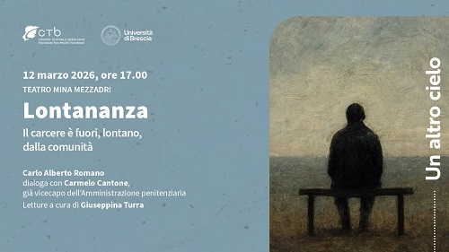 Dopo il successo del primo appuntamento, la rassegna prosegue giovedì 12 marzo 2026 con l’incontro intitolato “Lontananza. Il carcere è fuori, lontano, dalla comunità” dove Carlo Alberto Romano dialoga con Carmelo Cantone, già vicecapo dell’Amministrazione penitenziaria; le letture saranno a cura di Giuseppina Turra. L’incontro si svolgerà al Teatro Mina Mezzadri di Brescia (Contrada Santa Chiara, 50/A) alle ore 17; l’ingresso è libero fino a esaurimento posti disponibili.
