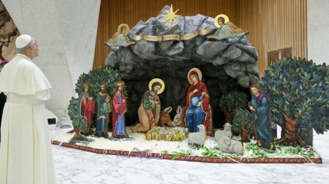 Non avevo colto la straordinaria novità del Presepe allestito quest’anno nella grande Aula Paolo VI del Vaticano (quella delle udienze generali). Per la Nuovabussola è un “Presepe pro-vita” (Stefano Chiappalone, Controcorrente. Dal presepe dell’Aula Paolo VI un “papale” messaggio pro-life, 18.12.25, Lanuovabq.it).