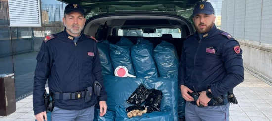 Il carico, raccolto in 13 balle di plastica di colore blu, era molto voluminoso, tanto da essere visibile dall’esterno e attirare subito l’attenzione degli agenti.