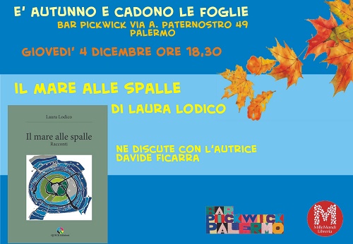 Palermo – Ultimi incontri della rassegna del Bar Pickwick, “E’ autunno e cadono le foglie”, dedicata alla letteratura ed al fumetto. Giovedì 4 dicembre a partire dalle 18,30 sarà la volta di Laura Lodico con il suo “Il mare alle spalle” edito da Quick Edizioni.