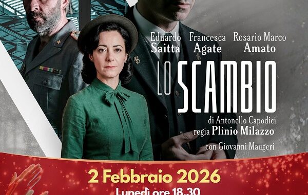 Lunedì 2 febbraio, alle ore 18.30, il Teatro Sollima di Marsala ospiterà lo spettacolo teatrale “Lo Scambio”, per la regia di Plinio Milazzo, su testo di Antonello Capodici. Si tratta di un nuovo appuntamento della rassegna teatrale ‘popolare’, diretta artisticamente dai fratelli Katia e Giuseppe Oddo, della Oddo Management, e prodotta dall’Associazione “Si Può Fare”.