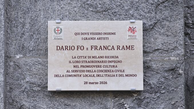 Questo pomeriggio, in corso di Porta Romana 132, all’ingresso del palazzo dove vissero insieme, è stata scoperta una targa in loro ricordo, la prima di una serie di iniziative che nel corso di quest’anno, in occasione del centenario della nascita di Fo, avvenuta il 24 marzo 1926, ne onoreranno la memoria.