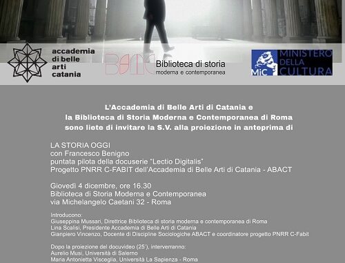 È la sfida di “Lectio Digitalis”, progetto di ricerca dell’Accademia di Belle Arti di Catania – Abact (finanziato dal PNRR tramite UE e MUR), la cui puntata pilota sarà presenterà in anteprima a Roma giovedì 4 dicembre, nella Biblioteca di Storia Moderna e Contemporanea (ore 16.30, via Michelangelo Caetani 32).