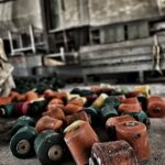 Be’ direi una bugia se dicessi che non avrei mai voluto portare via nulla da questi luoghi. Una volta ad esempio ho rubato un rocchetto di filo colorato di uno storico cotonificio. Ce ne erano talmente tanti e belli che non ho saputo resistere. Ma poi la seconda volta che sono tornata in quel posto l’ho voluto rimettere dove lo avevo trovato. Credo che rubare sia una forma di egoismo, quindi perché portare via una cosa che non ci appartiene…? Un’altra volta sono stata tentata di rubare da una casa di campagna ancora molto arredata dei quadri dipinti su tela che avrei esposto volentieri nel mio appartamento; un’altra volta ancora avrei portato via da una villa molto decadente un abito estivo trovato appeso sulla sua gruccia che mi sembrava proprio della mia taglia e di mio gusto. Ma come ho detto, non si porta via nulla, si guarda, si scatta e si va via…