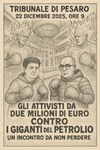 La mediazione in tribunale si è conclusa senza accordo, quindi si andrà a processo. Lo affronteremo il 22 dicembre con serenità e con l’assistenza di una legale competente e coraggiosa, l’avvocata Pia Perricci, che conosce bene la materia delle cause temerarie. È un cammino arduo, ma necessario, perché difendere il diritto di parola significa difendere tutti, non solo noi stessi. In particolare le generazioni future, che saranno chiamate a proteggere un pianeta sempre più “degradato” (questo, nello specifico, è il termine da noi usato e su cui è incentrata la causa che ci ha intentato Fox Petroli). La buona notizia è che l’Alto Commissario delle Nazioni Unite per i Diritti Umani, la Commissione europea e le principali organizzazioni che tutelano gli attivisti dalle SLAPP — fra cui CASE, Front Line Defenders e l’Hub di Protezione — ci sosterranno, dialogando, secondo le loro funzioni, con le istituzioni del nostro Paese.