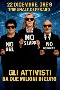 Il nostro crimine è di aver chiesto trasparenza e rispetto delle leggi che tutelano la salute pubblica e l’ambiente. Abbiamo evitato, grazie a una serie di appelli ed esposti, la realizzazione di un impianto di liquefazione del metano che avrebbe causato inquinamento e messo in pericolo la comunità pesarese, visto che il progetto ne prevedeva l’installazione in prossimità di case, scuole, locali pubblici e luoghi di cura. Contemporaneamente abbiamo sostenuto, con documenti alla mano, che il sito della Fox Petroli è un’area industriale vetusta, soggetta a degrado e potenzialmente contaminata. Di conseguenza, che servono analisi serie e interventi concreti. È bastato questo per essere accusati di diffamazione, attraverso una causa civile che rientra a pieno titolo tra le cosiddette SLAPP — Strategic Lawsuits Against Public Participation —, azioni legali temerarie intentate da soggetti potenti per intimidire o zittire chi esercita il diritto di parola, di critica o di difesa dell’interesse collettivo. È curioso, ma in Italia, per quanto riguarda l’ambiente, a volte il problema non è l’inquinamento, bensì chi osa nominarlo.