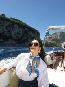 Per quanto mi riguarda, l’indumento che mi caratterizza sono le giacche. Poi il rossetto. Ma prima di tutto il sorriso.