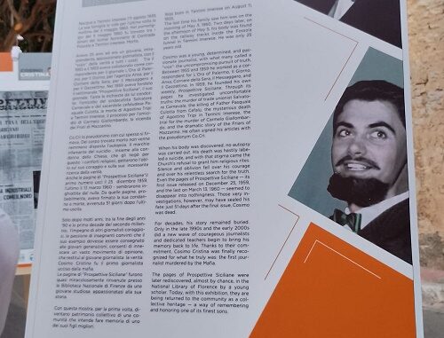 La mostra è composta da 15 pannelli di grandi dimensioni che riproducono gli editoriali e le pagine più significative di Prospettive Siciliane, il giornale fondato da Cristina nel 1959. Attraverso quegli articoli, il giovane direttore affrontò temi scomodi e denunciò dinamiche di potere e interessi opachi, firmando di fatto – secondo molti studiosi – la propria condanna a morte.