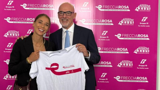 La nuova edizione del progetto di sensibilizzazione e divulgazione scientifica, promosso da Gruppo FS e Fondazione IncontraDonna, è stata presentata questa mattina a Roma nel corso della conferenza stampa alla quale hanno partecipato il ministro della Salute Orazio Schillaci, il presidente del Gruppo FS Italiane Tommaso Tanzilli, il presidente di Trenitalia Stefano Cuzzilla e la fondatrice della Fondazione IncontraDonna Adriana Bonifacino. Tra i relatori anche il segretario generale della FIGC Marco Brunelli, che ha preso parte all’evento insieme alla calciatrice della Lazio e della Nazionale Eleonora Goldoni per sottolineare l’impegno della Federcalcio, da quest’anno schierata al fianco di FrecciaRosa – insieme alla Federazione Italiana Rugby – per diffondere messaggi di prevenzione sul tema.