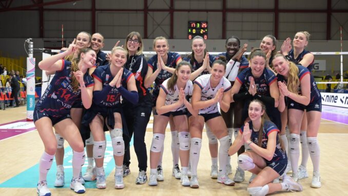 La Reale Mutua Fenera Chieri ’76 conquista a Cervia il suo nono successo stagionale sconfiggendo 0-3 l’Omag-Mt San Giovanni in Marignano. Il risultato restituisce il quarto posto in classifica, a pari punti con Novara ma davanti per quoziente set.