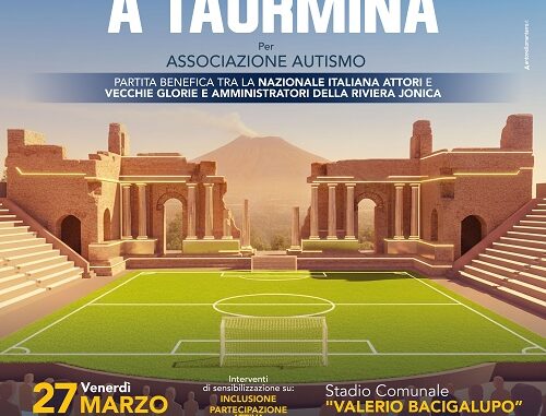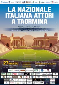 Venerdì 27 marzo la Nazionale Italiana Attori sarà a Taormina per partecipare a una partita speciale a sostegno dell’Associazione Autismo onlus di Nizza di Sicilia e, così, sostenere le tante attività di inserimento socio lavorativo per ragazze e ragazzi affetti da autismo, che si svolgono nel Centro del comune ionico. Il fischio d’inizio è previsto alle 10.30 allo stadio Valerio Bacigalupo.