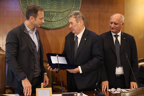 La cerimonia prosegue con un riconoscimento al Prof. Giovanni Radossi, Presidente Onorario dell’Unione Italiana e un ricordo in memoria del professor Luciano Rossit e del professor Antonio Borme.