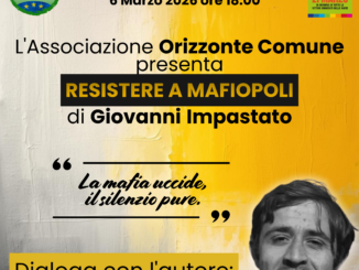 VILLAFRANCA TIRRENA. ORIZZONTE COMUNE PRESENTA “RESISTERE A MAFIOPOLI” DI GIOVANNI IMPASTATO, IL 6 MARZO