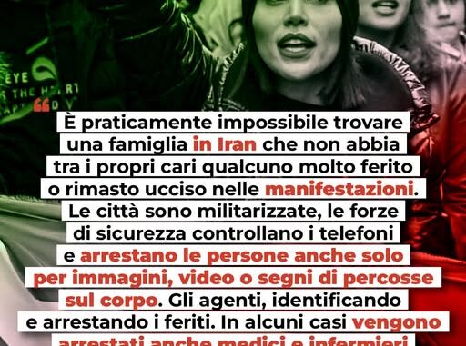 La repressione investe anche la vita quotidiana. «È praticamente impossibile trovare una famiglia in Iran che non abbia tra i propri cari qualcuno molto ferito o ucciso. Le città sono completamente militarizzate, le forze di sicurezza controllano i telefoni cellulari e arrestano le persone anche solo per immagini, video o segni di percosse sul corpo. […] La principale preoccupazione riguarda l’applicazione di pene severe, compresa la condanna a morte, per chi ha partecipato alle proteste. Esistono precedenti di esecuzioni di massa e il rischio è che possano ripetersi in silenzio».